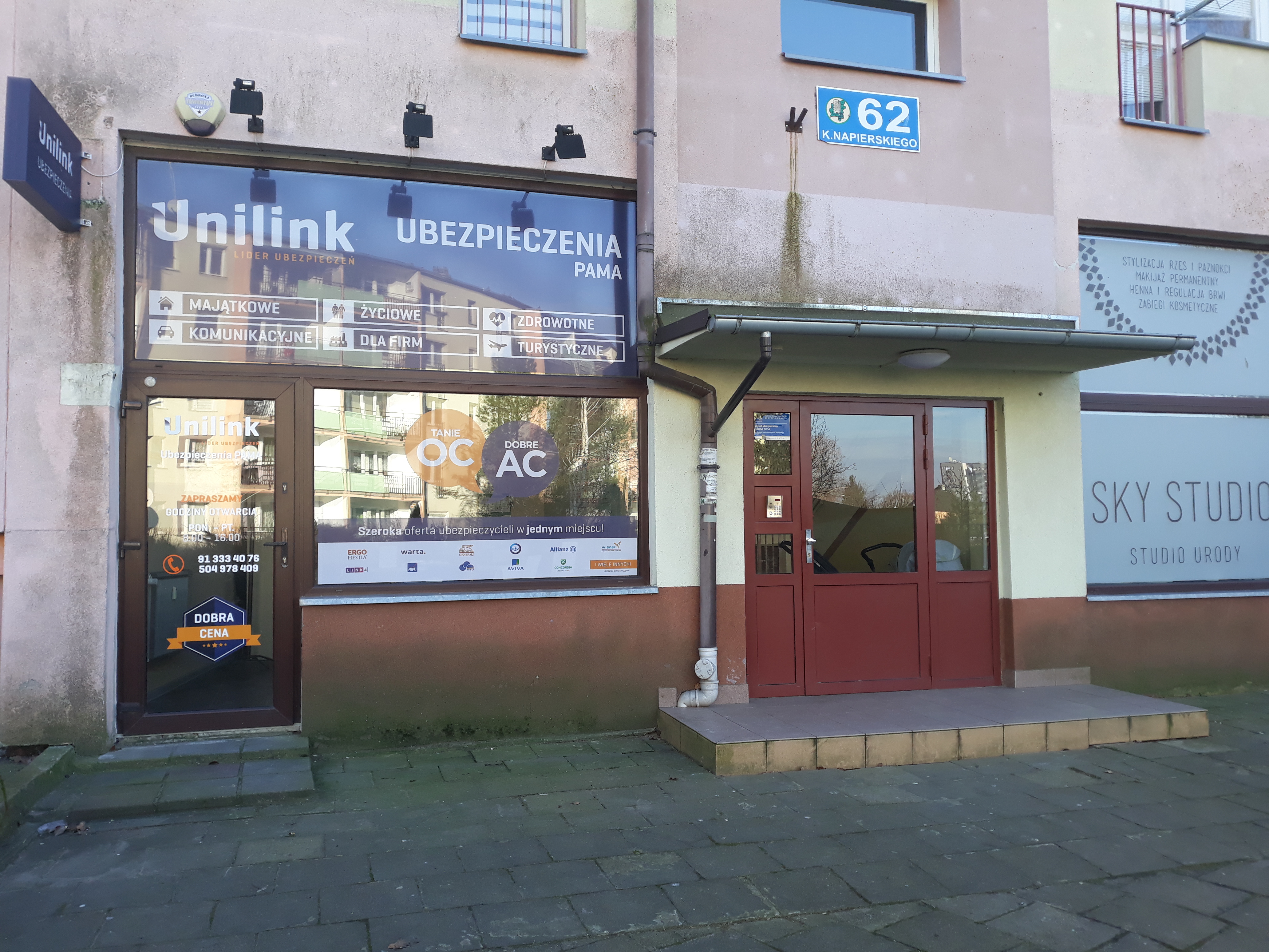 Nasze biuro mieści się przy ul. Kostki Napierskiego 62 tuż przy Przychodni ,,Prawobrzeże-Medyk”.
